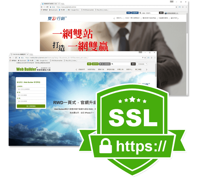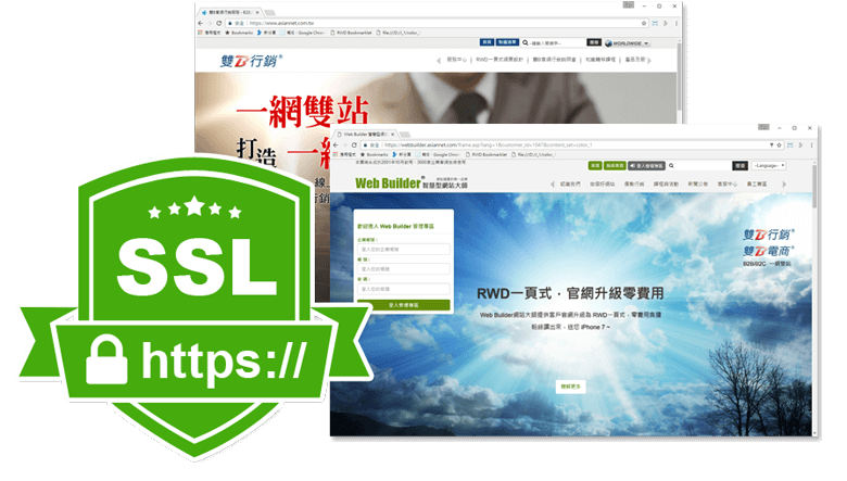 以往使用 SSL 安全憑證必須擁有固定 IP,費用高昂,不過 Web Builder 網站大師早在 2016 年中旬就已經著手解決此問題,提供更實惠的 SSL 安全憑證。現在,更多網站已加密連線,保障使用者瀏覽網站的安全。