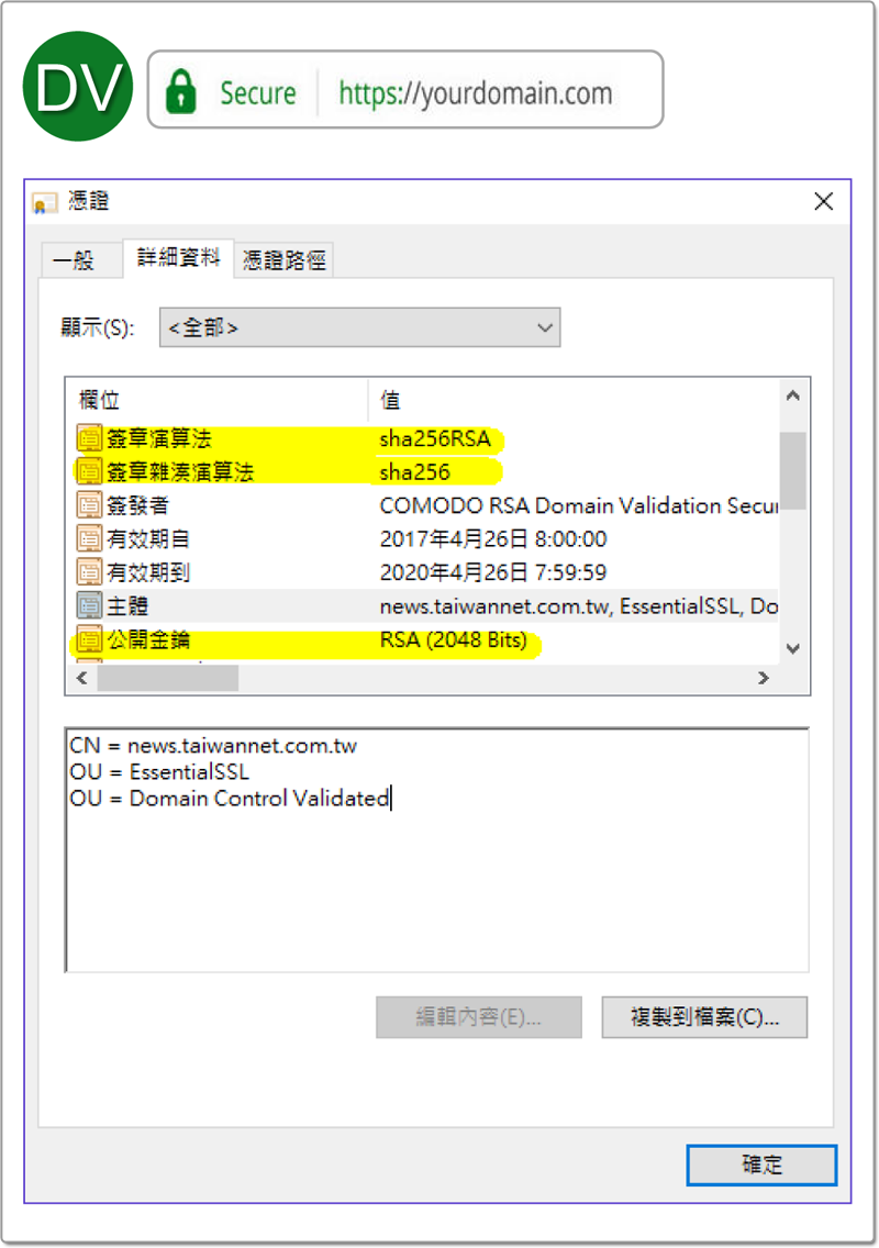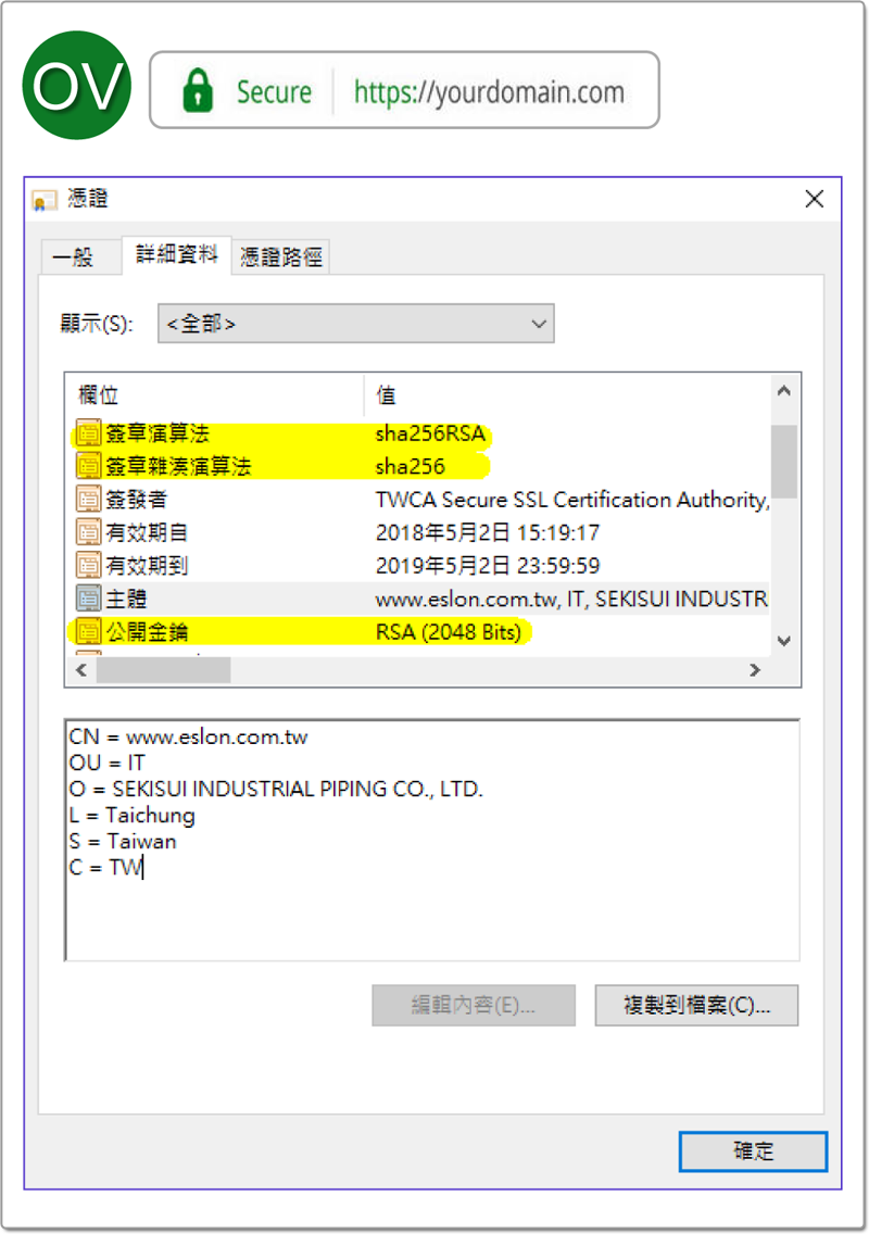 組織驗證 (OV) SSL 保護 1 個網站安全 |