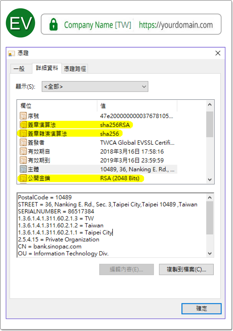 延伸驗證 (EV) SSL 保護 1 個網站安全 |