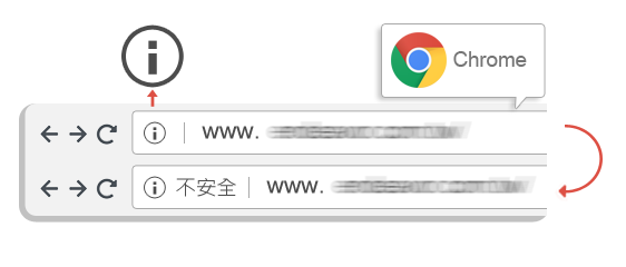 SSL 安全憑證普及化時代來臨,當使用最新版本的 Google Chrome 瀏覽器訪問未安裝 SSL 憑證的網站時,瀏覽器會在網址列左側顯示一個灰色文字「不安全」提示及圖示。這是 Chrome 瀏覽器為了提醒使用者該網站連線未經過加密,可能會存在安全風險而添加的提示。另外,當使用者在未安裝 SSL 憑證的網站輸入敏感資訊(例如密碼或信用卡號碼)時,網址列還會以紅色文字「不安全」提示使用者注意安全風險。而其他大部分主流瀏覽器 (如: Firefox、Microsoft Edge、Safari) 在處理未安裝 SSL 憑證的網站時,也會在網址列顯示類似「不安全」、「不受信任」等警示訊息,以提醒使用者該網站的安全風險。